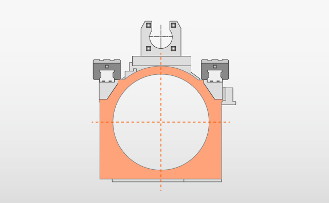 Der symmetrische Aufbau der Spindeleinheit verringert Wärmeversatz an der Spindel während der Bearbeitung.