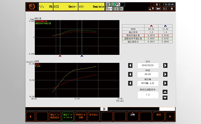 THERMAL SHIELD è un software Mazak dedicato alla gestione della compensazione automatica della dilatazione termica residua in funzione del cambiamento della temperatura ambiente per garantire migliore precisione nelle lavorazioni in continuo. MAZAK ha eseguito, in ambienti a temperatura controllata, diversi test di verifica del corretto funzionamento di questo sistema e ha usato i risultati ottenuti per sviluppare una funzione di controllo che compensa automaticamente la variazione di temperatura nell'area di lavorazione.