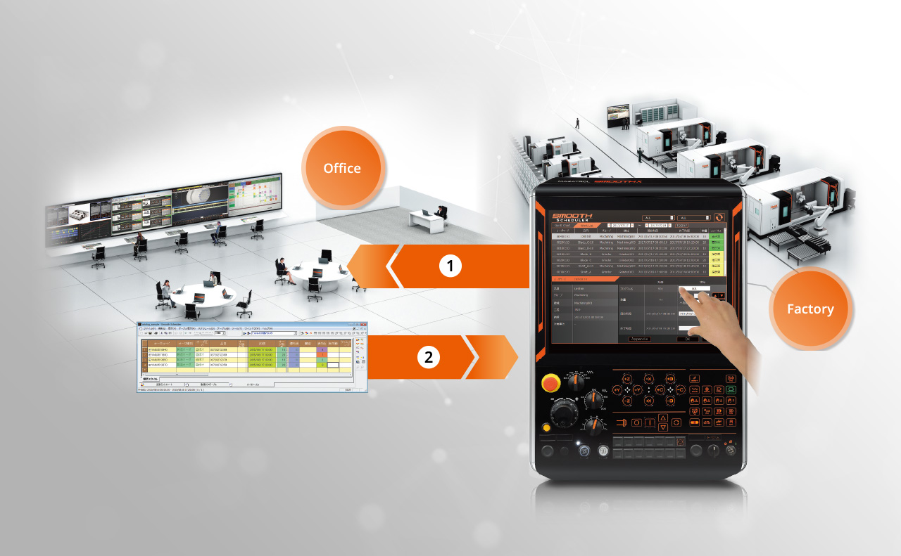 Crea automaticamente programmi di lavorazione ottimali in base alle informazioni di produzione quali qualità, processo, data di consegna, numero di pezzi lavorati, ecc. Visualizza l'avanzamento della produzione visualizzando la pianificazione in un diagramma di Gantt. Inoltre, consente un funzionamento efficiente delle apparecchiature poiché è possibile monitorarne la disponibilità.