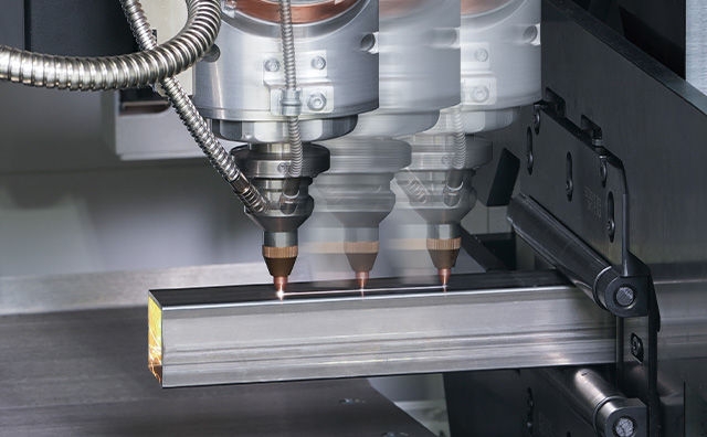 最大ワーク寸法:Φ152 mmの丸パイプ、125 mm角パイプに対応。レーザヘッドはU軸による高速動作を可能にし、軟鋼、ステンレス、銅、真鍮、アルミなどの材料を高速・高精度に切断できます。