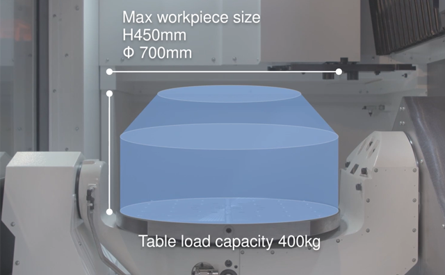 Het 5-assige verticale bewerkingscentrum met brugconstructie en een volledig ondersteunde draaitafel biedt hoge stijfheid voor uiterst nauwkeurige bewerkingen.