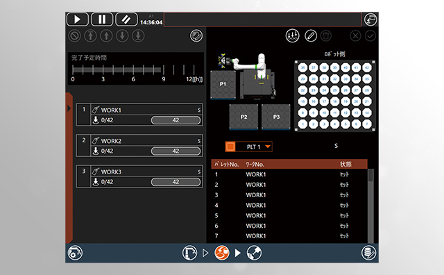 Les simulations basées sur les données réelles de la machine permettent d'optimiser rapidement et facilement les plans d'exploitation du système à l'avance. En outre, il affiche une liste des outils manquants pour le fonctionnement automatique, une liste des outils qui ne seront pas utilisés pour le fonctionnement automatique, ainsi qu'une prévision du temps et du nombre de pièces qui seront achevées.