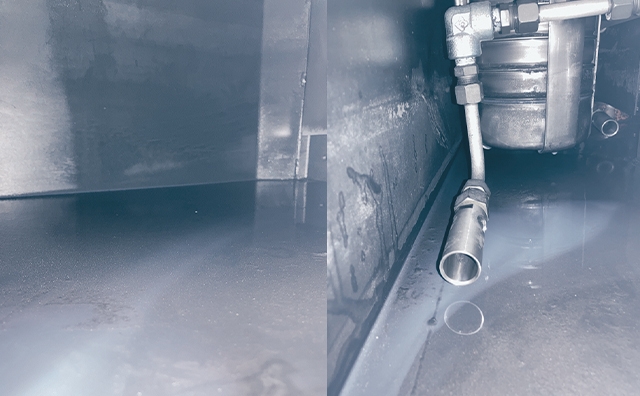 Le réservoir de liquide de refroidissement est doté d’un jet de liquide de refroidissement qui crée un vortex au centre afin que les petits copeaux usinés ne se déposent pas dans le réservoir. Cette caractéristique permet de garder le réservoir de liquide de refroidissement propre et de prolonger la durée de vie du liquide de refroidissement. La facilité d’entretien est également assurée. La fréquence des changements de liquide de refroidissement est réduite ainsi que les émissions de CO₂ lors de l’élimination du liquide de refroidissement.