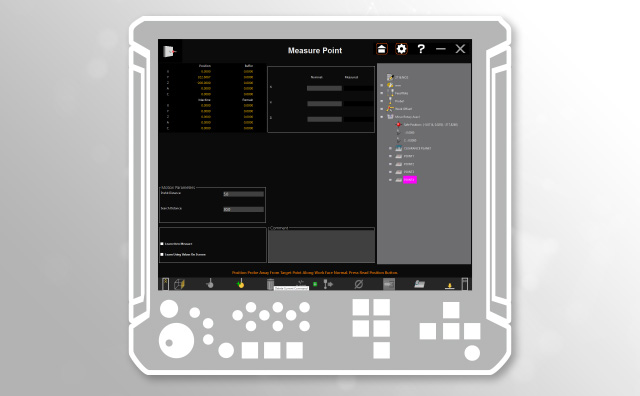 Program měření lze vytvořit manuálním ovládáním stroje podle pokynů na obrazovce, přesunutím dotykové sondy do bodu měření a ponecháním softwaru rozeznat bod měření. Kromě automatické aktualizace souřadnic obrobku a posunutí nástroje pomocí výsledků měření je také možné určit geometrické tolerance. Software má flexibilitu pro změnu bodů měření a má funkci výpočtu, která spojuje výsledky měření.