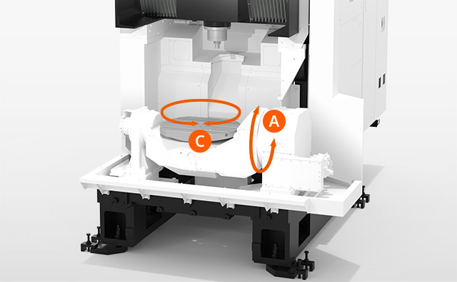 Nagy merevségű, kéttengelyes (A- és C-tengely) forgóasztallal felszerelve, amely mindkét végén alátámasztott. A szimultán négytengelyes megmunkálás és az A-tengely pozicionálása lehetővé teszi a többoldali, bármely szögből történő folyamatos megmunkálást, ezzel biztosítva a folyamatintegrációt.