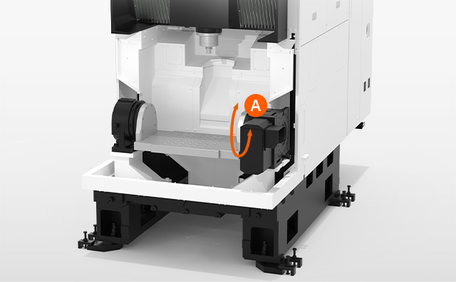 Az A-tengelyes asztal lehetővé teszi a pozicionálást bármilyen szögben. Ez javítja a termelékenységet azáltal, hogy lehetővé teszi a felső, oldalsó és ferde felületek megmunkálását egyetlen beállítással.
