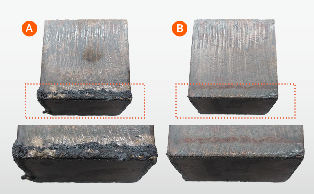 B: 50,0 mm vastagságú anyag vágott felülete GRAND CUT + Mazak SmoothCUT használatával