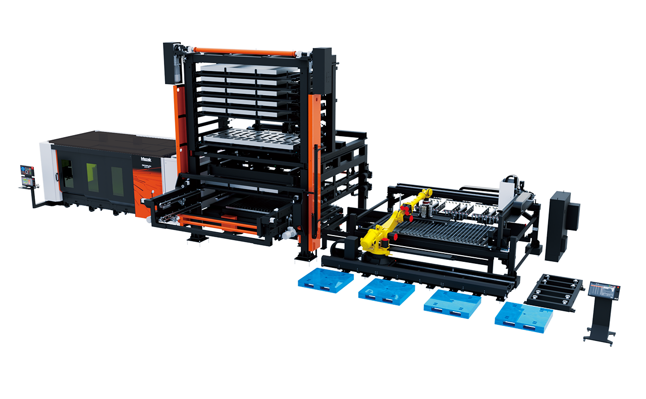 Worksheets stored in the material stocker are loaded onto the machine sheet by loader and the cut sheets are unloaded automatically according to the schedule. Since the loader and unloader are on the same line, it is possible to expand the number of machines or shelves according to your requirement.