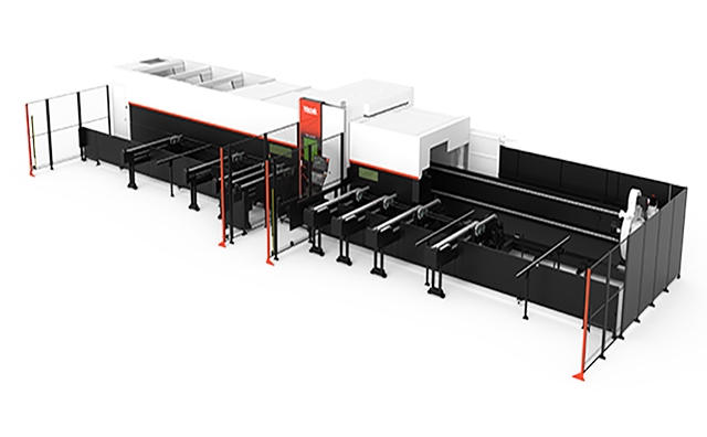 Materials are automatically loaded onto the machine by a high-capacity bundle loader from the rear side. After laser processing, the cut parts are automatically unloaded.