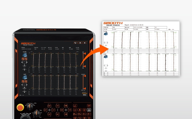 The measurement results are displayed on the MAZATROL SmoothAi display, and the gear tooth surface can be viewed.