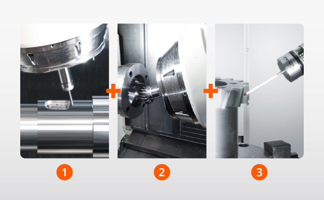 - Three types of gear machining methods (gear skiving, hobbing, and endmilling) are integrated to meet diverse needs, from high-mix low-volume production to mass production