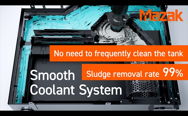 The coolant tank has a coolant jet that makes a vortex in the center so that small machined chips will not settle in the tank. This feature makes it possible to keep the coolant tank clean and extend the service life of the coolant. Ease of maintenance is also ensured. The frequency of coolant changes is reduced as well as CO₂ emissions at coolant disposal.