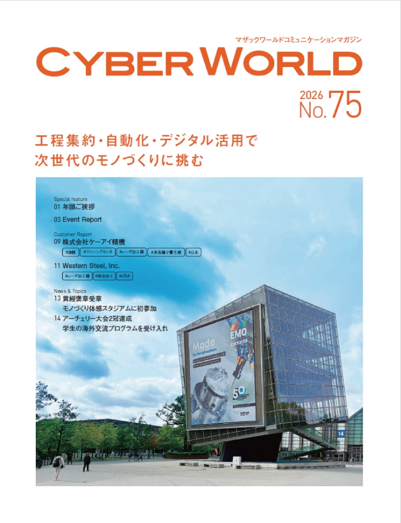 サイバーワールドは、技術者、経営者の方々のために工作機械・レーザ加工機を巡る業界トレンドや最先端技術をはじめとして、ソリューションや産業別特集などを、毎号さまざまな視点から紹介している広報誌です。