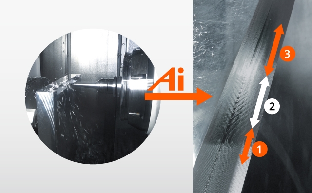 การควบคุมด้วย AI ที่เป็นเอกลักษณ์ของ Mazak เข้ามาช่วยควบคุมคุณภาพพื้นผิวงานและเพิ่มผลผลิต หากเกิดการสั่นสะเทือนระหว่างการกัด เซ็นเซอร์และระบบควบคุมแบบ AI จะเปลี่ยนสภาพการตัดเฉือนโดยอัตโนมัติเพื่อลดการสั่นสะเทือนที่เกิดจากการตัดเฉือน