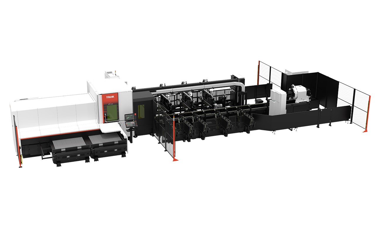 透過自動化功能,如整綑上料器自動搬入出材料、加工尺寸補償、自動清潔噴嘴等,加速管材量產加工的全面自動化。