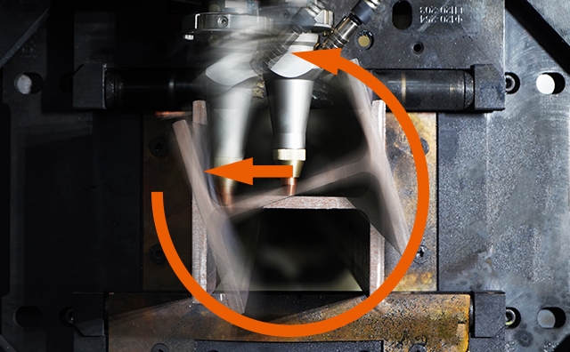 透過 C 軸旋轉軸與加工頭線性軸的同步控制,可實現 H 型鋼、I 型鋼及 L 型鋼等材料的加工。針對型鋼接合處相互組合的複雜形狀,也能以高品質的切斷面實現高精度加工。