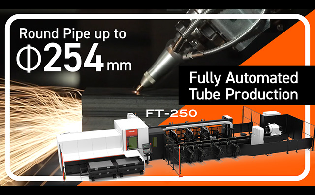 最大工件尺寸:Φ152 mm的圓管、125 mm的方管。標準搭載的3D鐳射頭可以進行斜面加工並能夠高速高精度地切割軟鋼、不銹鋼、銅、黃銅、鋁等材料。