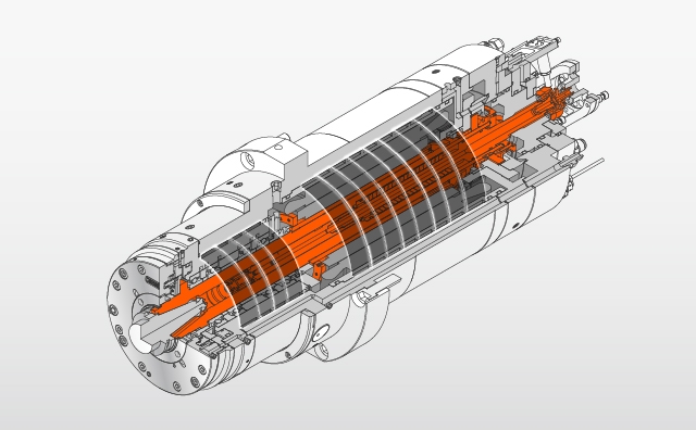 內藏式馬達主軸結構減少了動力損耗,並最大限度地抑制高速加工時的振動,不僅提升加工表面品質,同時也延長刀具的使用壽命。