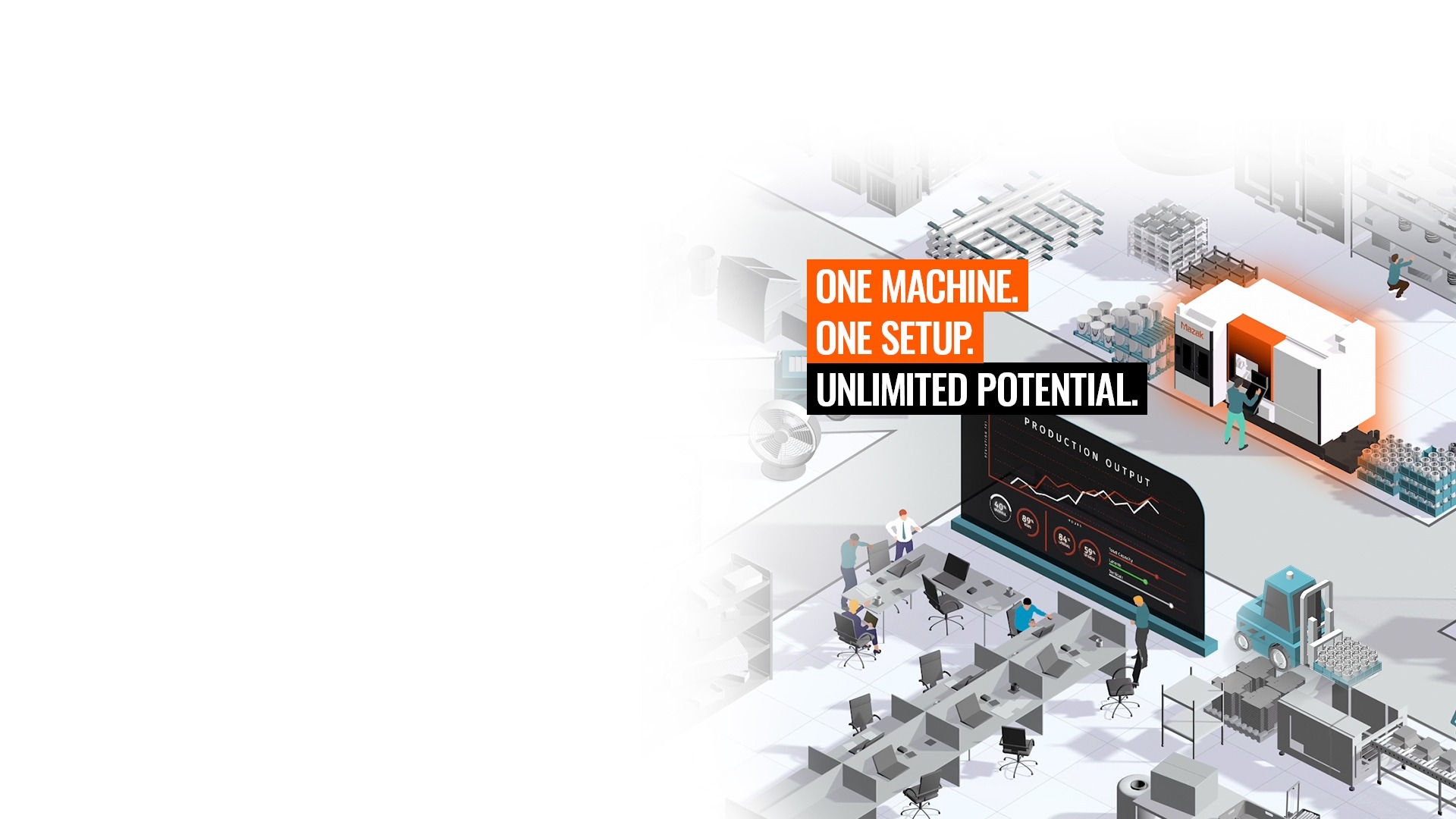 Innovation in production activities with machine tools. This is supported by Mazak's state-of-the-art technology. Mazak's machine tools continue to evolve by multiple technologies such as process integration by 5-axis multi-tasking, gear machining, grinding, and laser. Mazak provides products and solutions that can support a wide range of parts machining processes, such as high-speed and high-accuracy machines, various automation systems, and production support software and CNC equipment that supports skill levelling and setup.