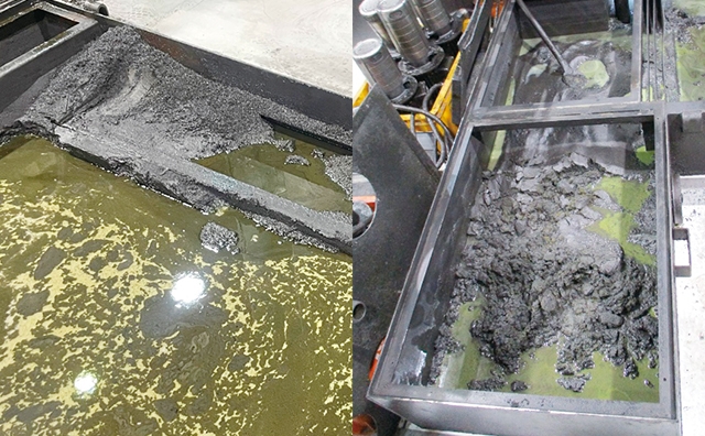 El depósito de refrigerante tiene un chorro de refrigerante que hace un vórtice en el centro para que las pequeñas virutas mecanizadas no se depositen en el depósito. Esta característica permite mantener limpio el depósito de refrigerante y prolongar su vida útil. La facilidad de mantenimiento también está garantizada. Se reduce la frecuencia de los cambios de refrigerante, así como las emisiones de CO₂ en la eliminación del refrigerante.