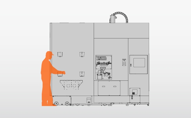 Các cửa sổ cửa trước lớn theo tiêu chuẩn cho phép người vận hành dễ dàng theo dõi quá trình gia công.